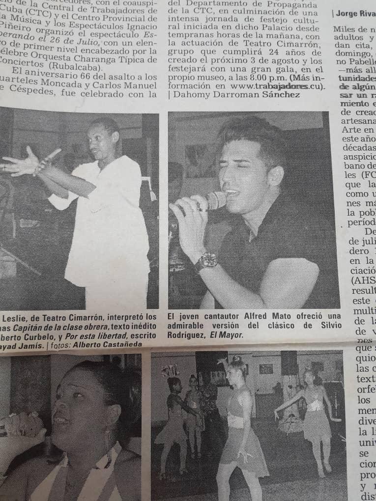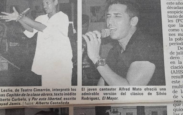 (En el artículo, Alfred fue descrito como un joven cantante y compositor, destacando su papel no solo como vocalista, sino también como músico involucrado en el proceso creativo. El periódico señaló que interpretó de manera admirable el clásico “El Mayor” del reconocido cantautor cubano Silvio Rodríguez.)